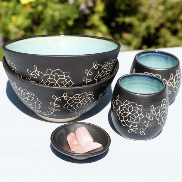 Blue and Black Hand-Carved Bowls and Tumblers by Tina Fossella Published: April 20, 2026 (4 days ago) $60 CategoryART MEDIUM - 3D ART / CeramicsWheel-thrown and hand-decorated blue and black bowls and tumblers. Send Message Your Name * Your Email * Subject * Message * Website Address