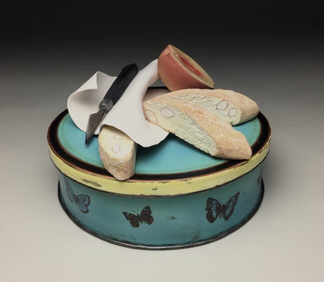 BLUE BUTTERFLY TIN, Porcelain, 5″h x 9.5″w x 8″d