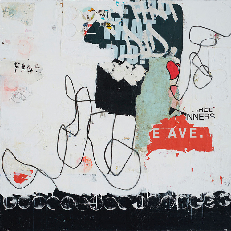48 x 48 Layers spill and shift across the surface, echoing the rhythm of change as it builds, releases, and reshapes. Fragments, color, and gesture move in a loose cascade—some held, some letting go—creating a sense of both momentum and surrender. It’s about trusting the unfolding, even when the path isn’t fully clear.