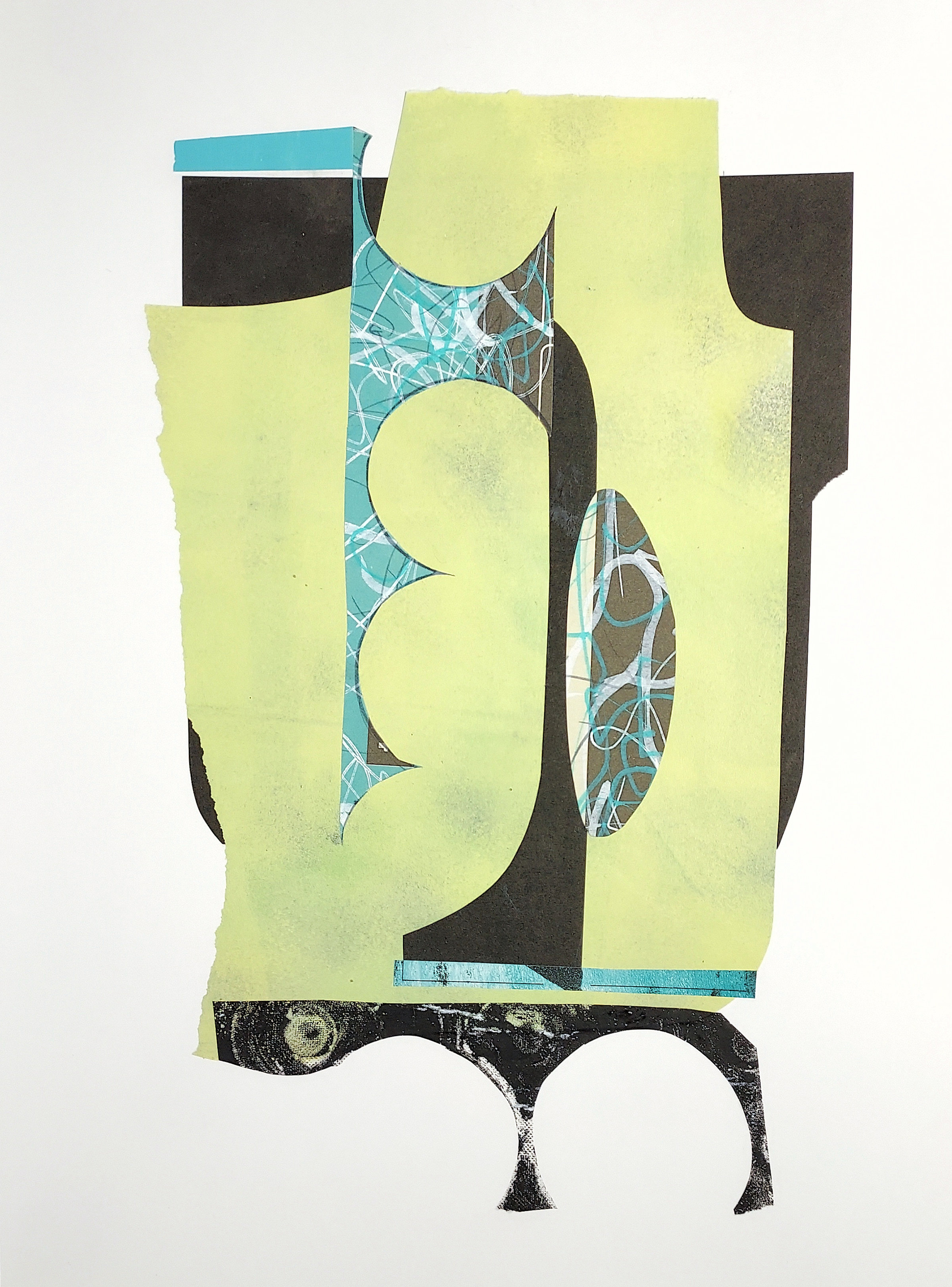 Mixed Media Collage with hand painted/printed and found papers, 12″ x 9″