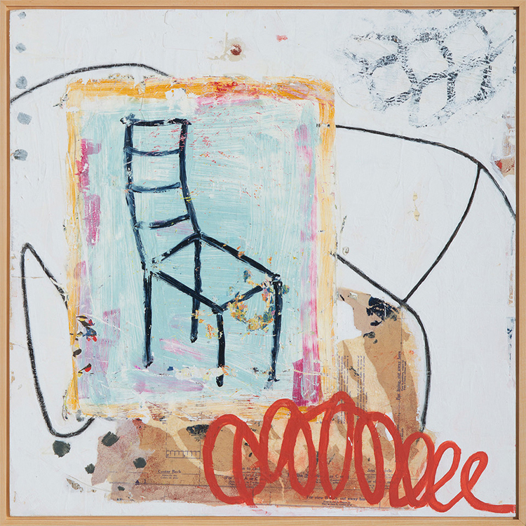 30 x 30 (framed in basswood) Soft layers and wandering marks drift across the surface, echoing the gentle rhythm of a mind at ease. Fragments of color and line move without urgency, allowing space for imagination to unfold. Framed in warm basswood, the piece holds a quiet invitation to pause, soften, and let yourself wander.