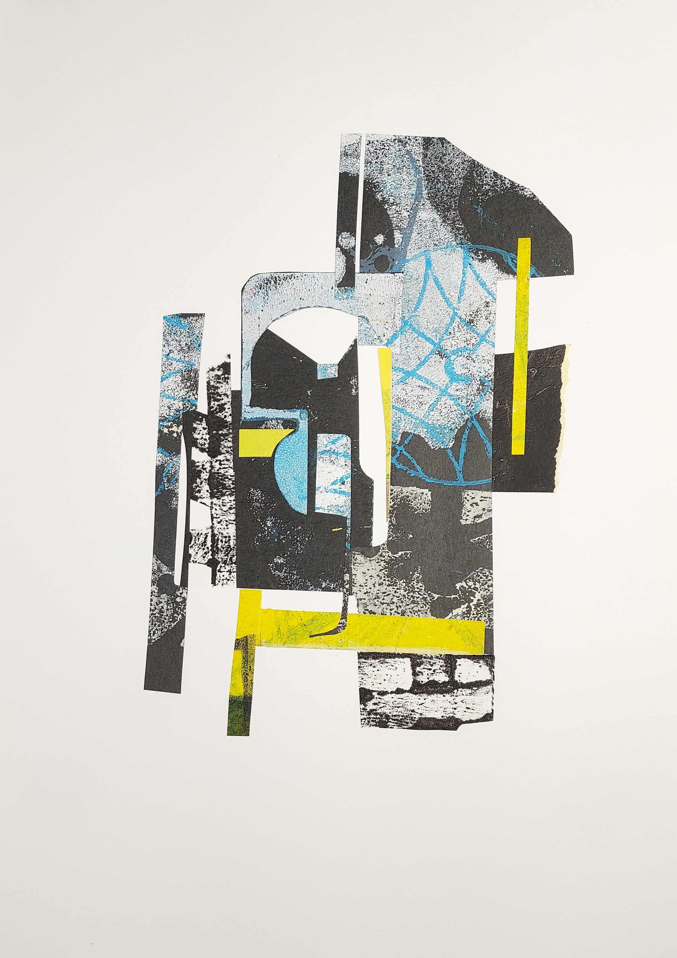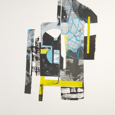 Mixed Media Collage with hand painted/printed and found papers, 13.5″ x 9.5″