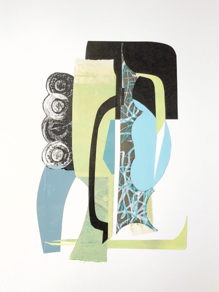 Mixed Media Collage with hand painted/printed and found papers, 12″ x 9″