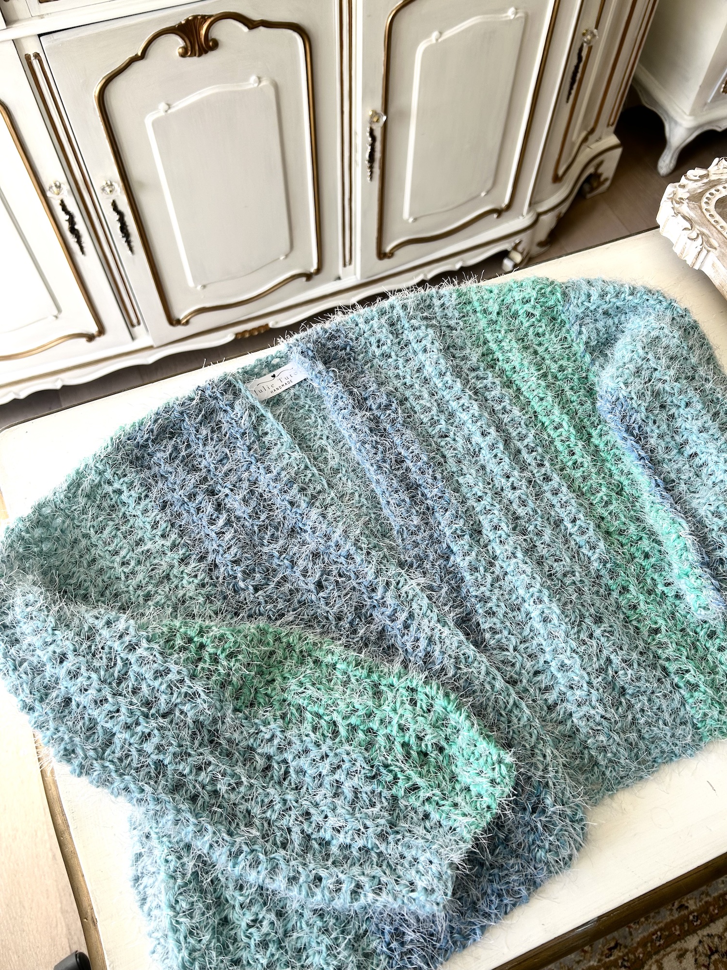 Hand crocheted cardigans with super soft cotton/poly blend yarns. Light weight enough for Spring/Summer, cozy enough for Fall/Winter.