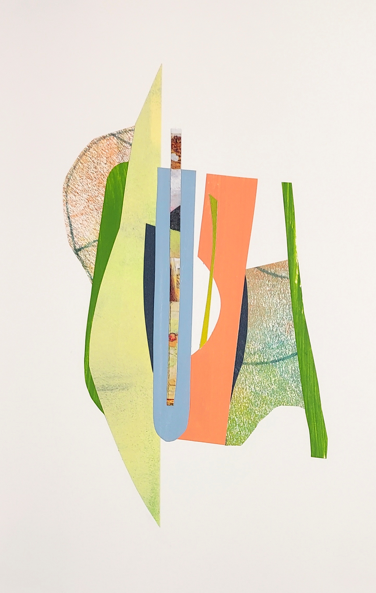 Mixed Media Collage with hand painted/printed and found papers, 8.5″ x 5.5″