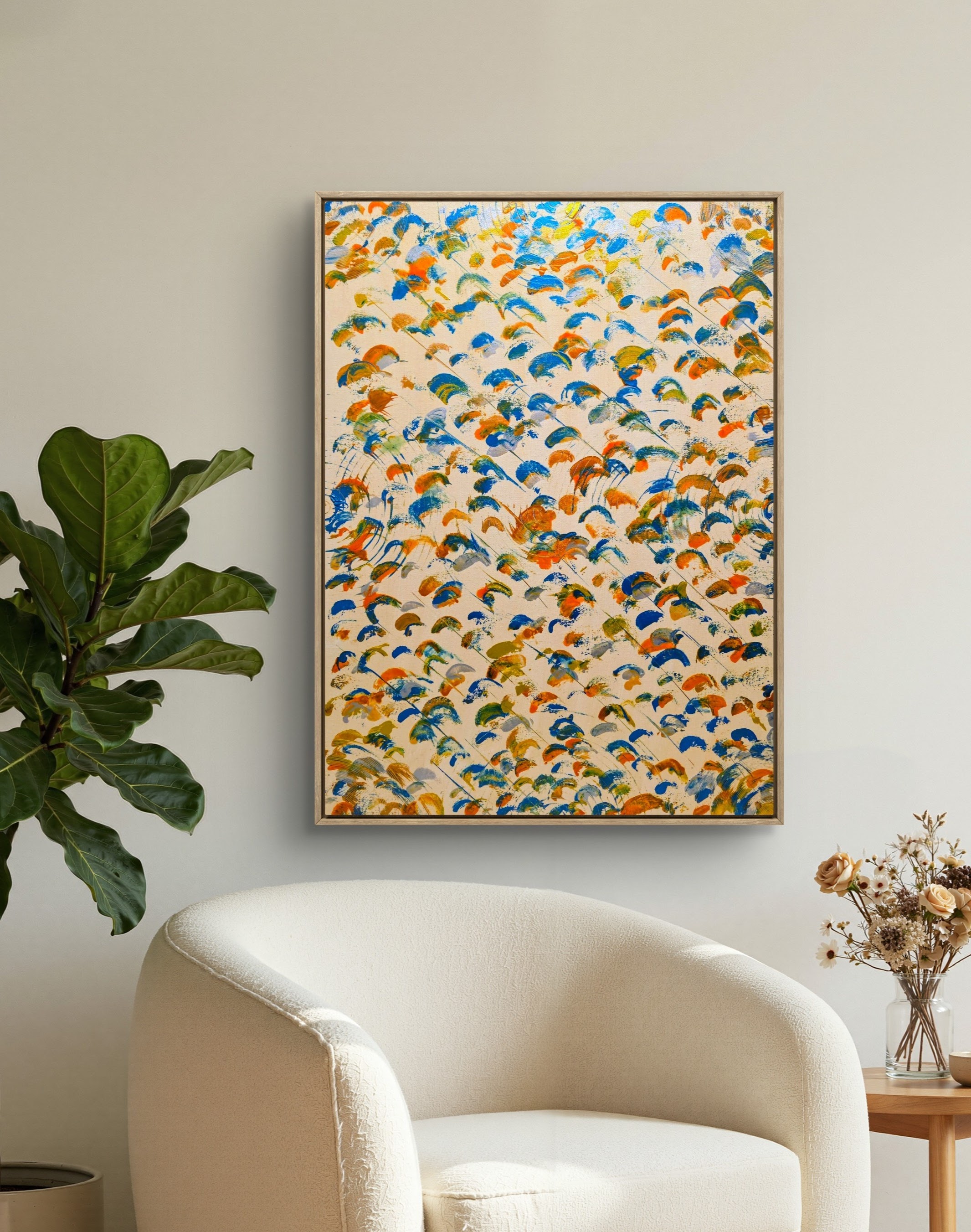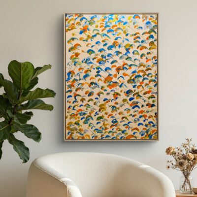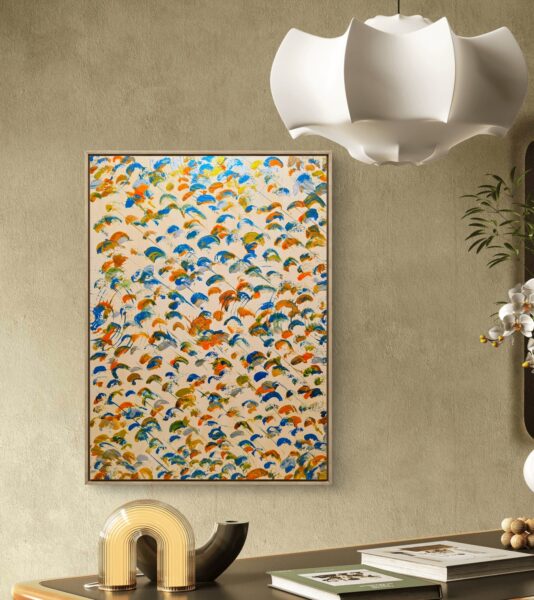 Inspired by rhythm, intuition, and emotion, this new piece of the Leaping Colors series carries forward the vibrant energy of the original collection— like colors dancing across the canvas to music.