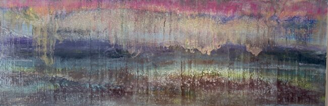 Subtle threads of connection drift through layers of color and quiet light. This painting speaks of a love that forms slowly, soulfully woven not with urgency, but with care, intention, and grace. A meditation on feminine strength, softness, and the enduring weave of the heart.