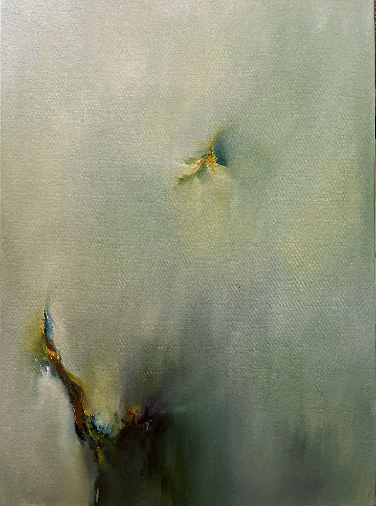 30″h x 22″w – Abstract oil on canvas in grey greens