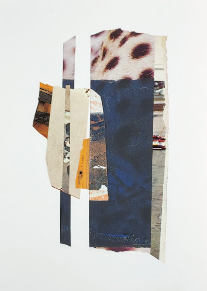 Mixed Media Collage with hand painted/printed and found papers, 8.5″ x 5.5″