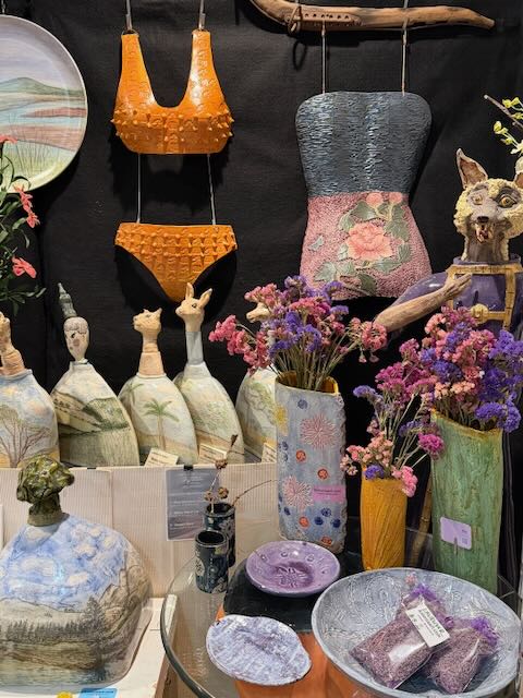 Sculptures currently in my studio. Tang Bikini , Peony Princess – from Body art backbone series , Wolf in sheep’s clothing, DVarious decanters and Vases.