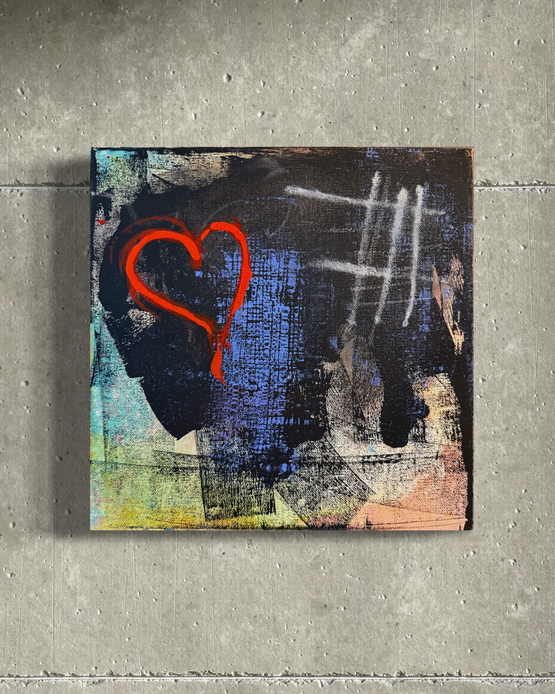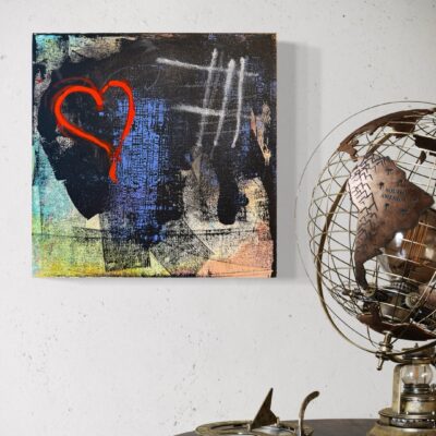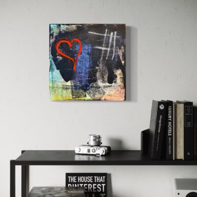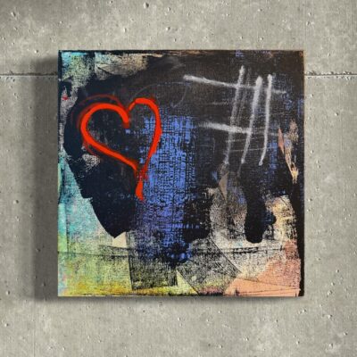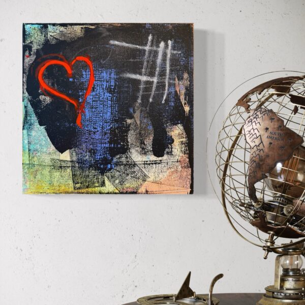 A heart emerges from a textured sea of colors, juxtaposing raw emotion against abstract depth. “I saw that you were perfect, and so I loved you. Then I saw that you were not perfect, and I loved you even more” – Angelita Lim