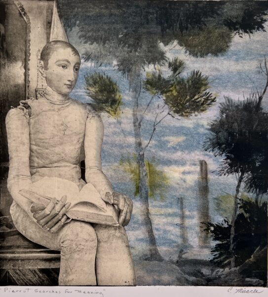 This piece is technically mixed media. It is combining two monoprints using two different Image On plates along with a monoprint plate and some chine colle. It is using Japanese paper (Kitikana) and Arches 88, and some japanese paper for chine colle.