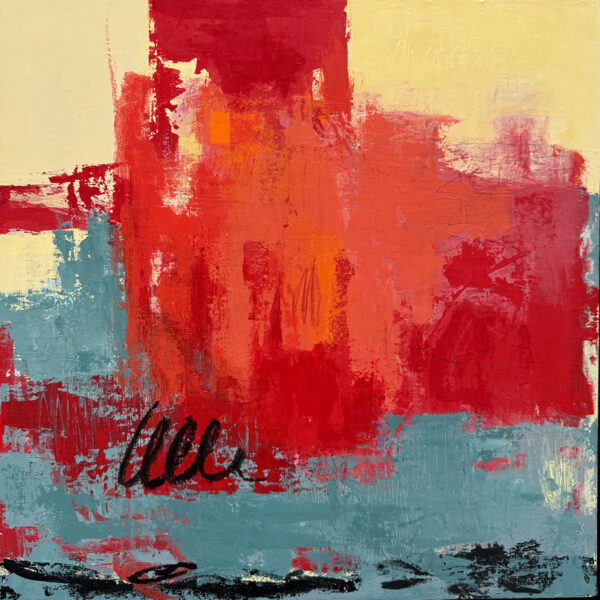 Abstract acrylic painting on stretched canvas (18″ x 18″) Framed: maple floater frame (19″x 19″)