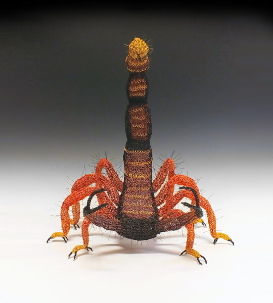Description: Knotless netting is an ancient textile technique using rope to make nets. The process requires passing the full length of rope through each loop. By using repurposed telephone wire I changed the modus operandi. I am able to form sculptural art that’s contemporary but also expands of boundaries of this technique.