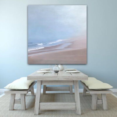A super foggy and ethereal morning on the beach inspired a series of 3 large (48″x48″) oil paintings (all originals are available).