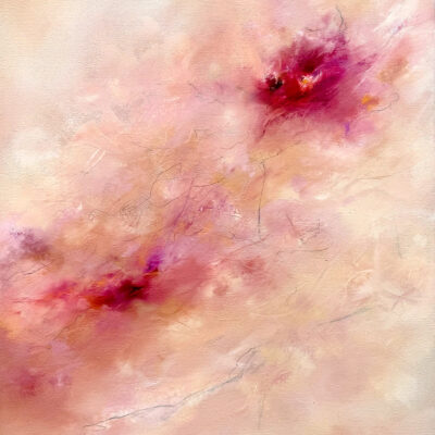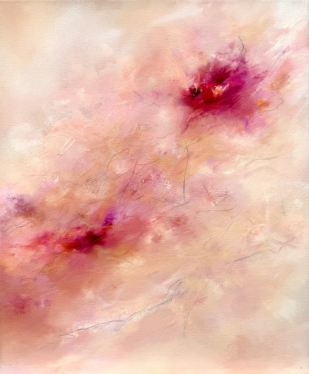 Abstract painting with warm creams and bright magenta & fuchia