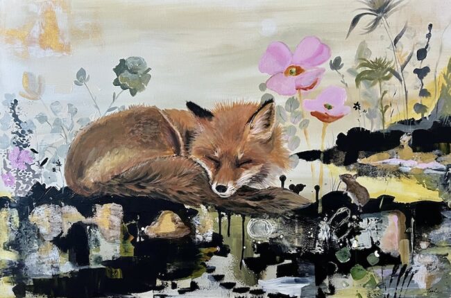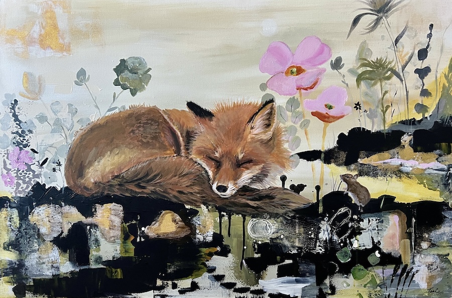 A mouse pops up to find a fox sleeping! Boy, is he surprized… now back away slowly! Put this art in any room where you want to get a good rest!