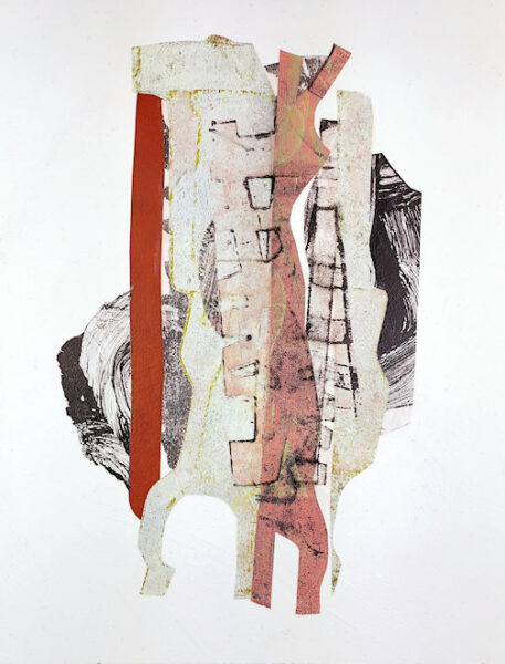Mixed Media Collage with hand painted/printed and found papers, 14″ x 11″