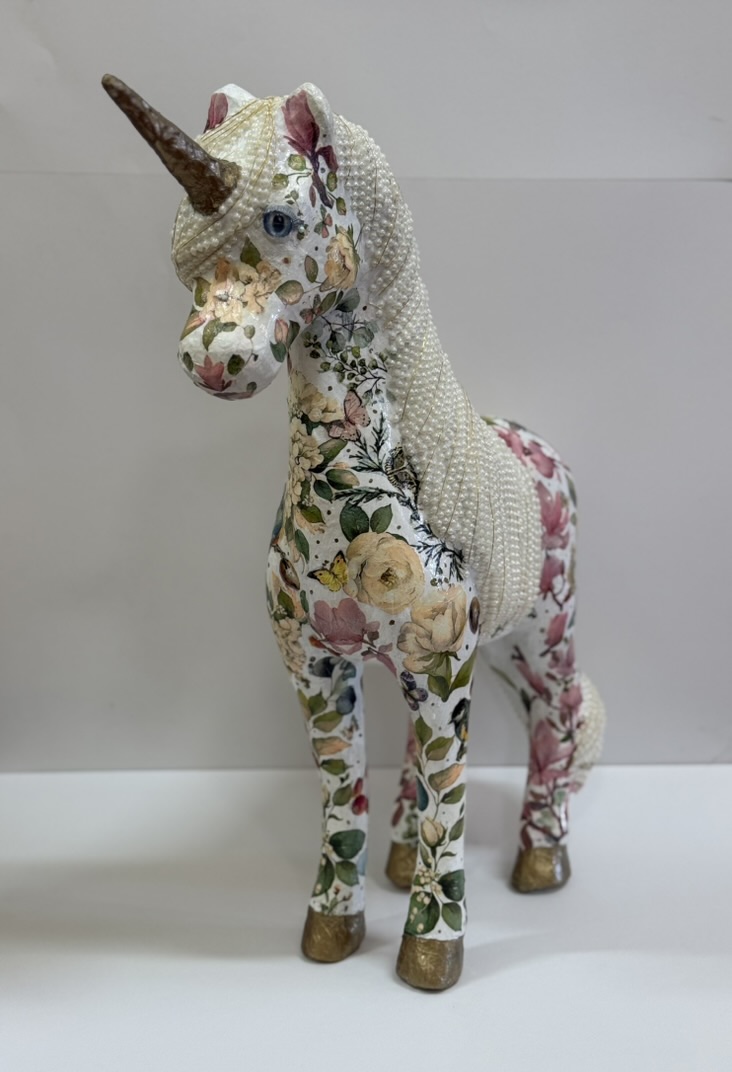 Paper mache’, decoupage, pearl beads
