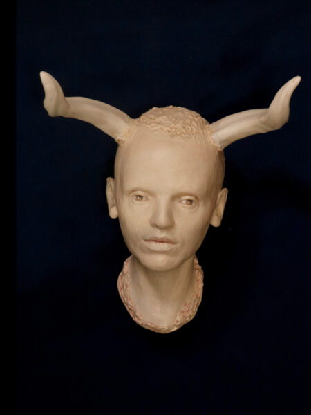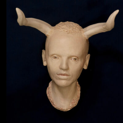 Glazed ceramic girl with horns, roughly half life size