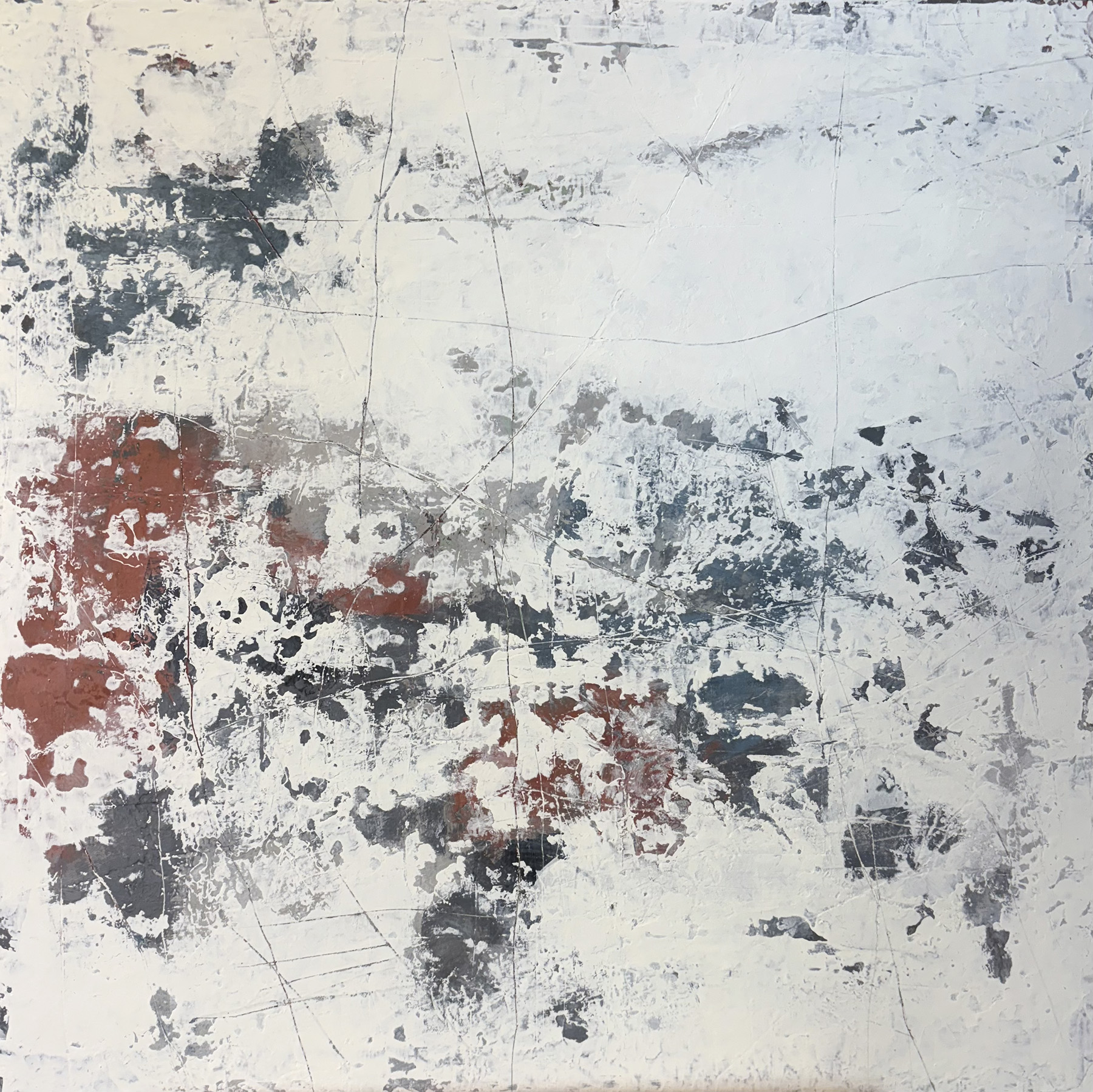 The muted tones collaborate rather than compete, fostering a harmonious atmosphere, inviting the viewer to engage not just visually, but almost tactilely, as though the surface holds secrets of past gestures and decisions. The sides are painted black.