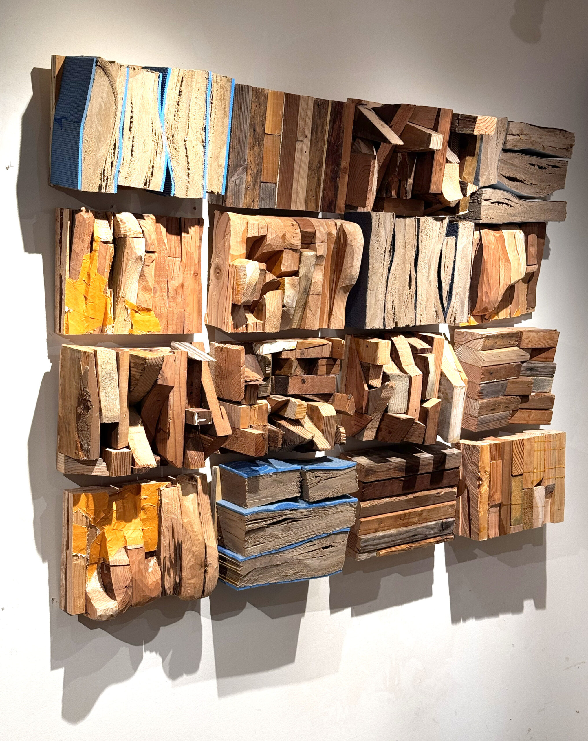 I document time and transformation by collecting, repurposing, layering, and recombining materials. My work is influenced by topography, geology, process, and chance.