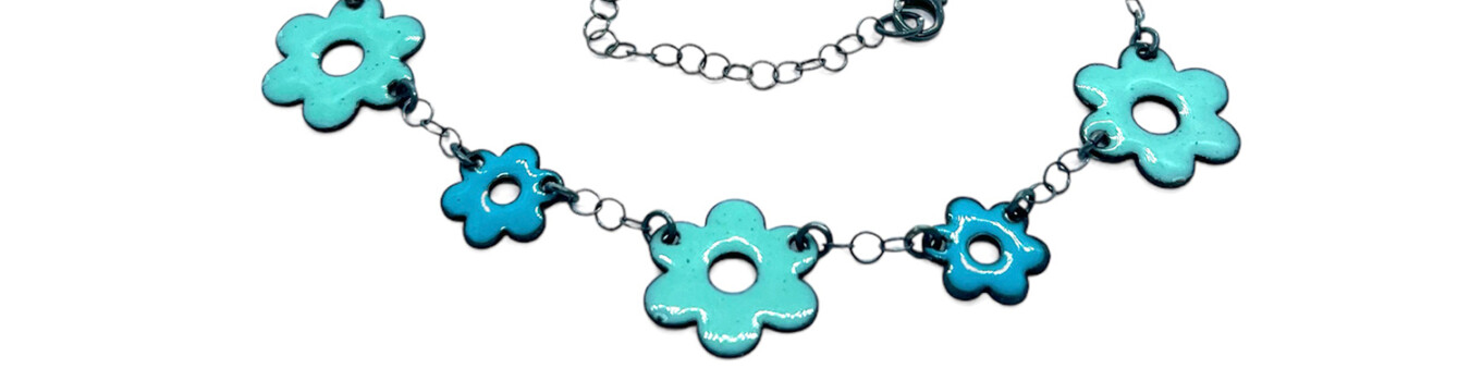 All of my jewelry is hand fabricated of sterling silver, copper, enamel, semi-precious gems, and sometimes other stuff. I enjoy finding ways to integrate color into my pieces. Also, I know what my pals and I like to wear everyday and when we go out – It’s easy to stay inspired surrounded by hip, positive, stylish girlfriends!