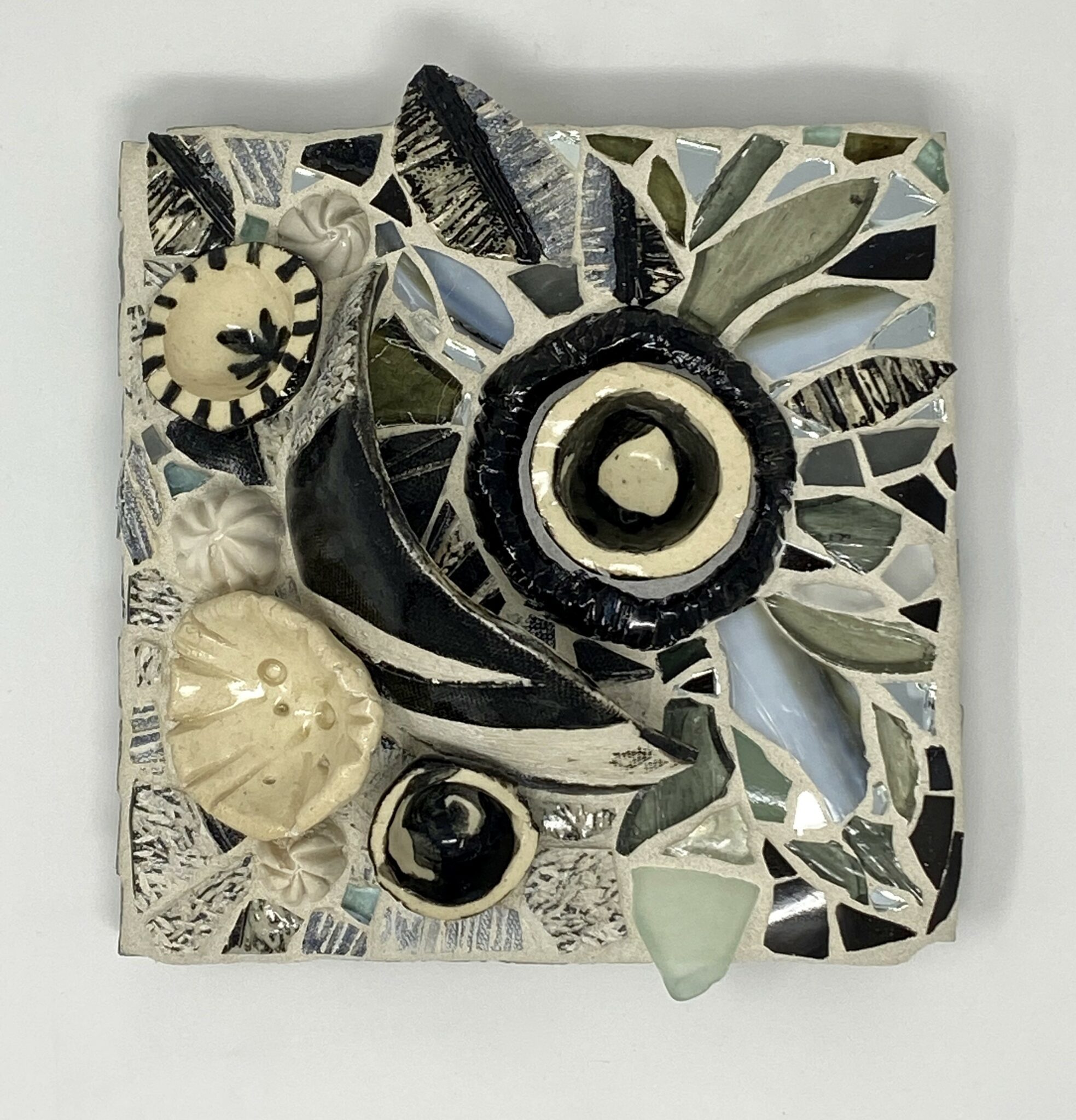 Each piece I make somehow influences the next. Subject matter or pattern translates from form to form and gives me new ideas every day. With mosaic artwork I embrace color and with sgraffito/clay I limit color and embrace shape and the illustrative process.