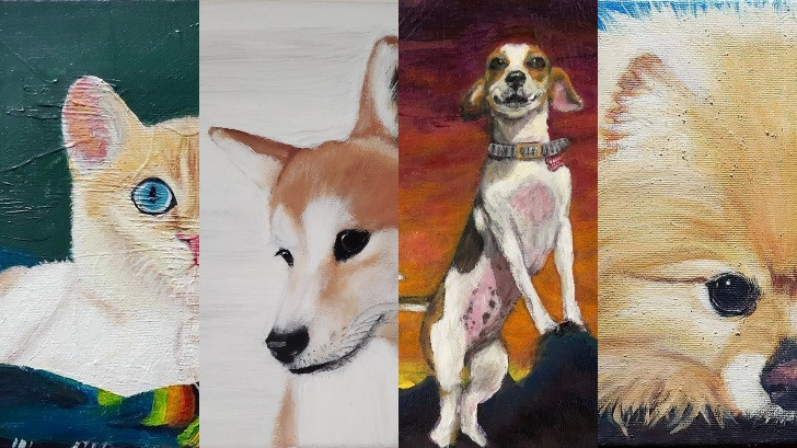 One of the things I love most about painting portraits is evoking an emotional response in my clients. Whether it’s a memorial portrait for a pet that passed away or a surprise portrait for someone who loves their pet more than humans, it warms my heart to see their reactions and hear how they cried when they saw the finished canvas. In a world filled with darkness and doubt, I find solace in knowing my pieces bring light, color and joy to the homes of others.