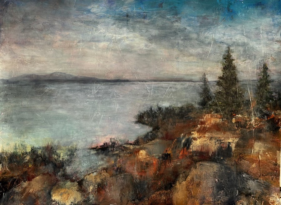 Drawing from her homes in coastal California and Maine, Kouyoumdjian draws daily inspiration from the elemental beauty surrounding her—mist rising over tidal flats, the textures of lichen and bark, the shifting colors of dawn and dusk. The region’s rugged landscape and ever-changing weather patterns have become integral to her practice, reminding her that art, like the land, is alive and evolving. Her works often begin outdoors, where she collects impressions, sketches, and materials, then translates those observations into the studio. There, she reinterprets the sensory experience of being in nature—the smell of salt air, the softness of fog, the resilience of rock—through abstract form and texture.
