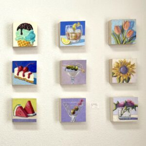 People say my paintings make them smile, and I’m delighted they have that effect. My style is inspired by my previous work in the graphic design industry. Much of my work takes food as the subject matter for contemporary paintings. I am drawn to simple objects, most notably desserts, and like to establish good color relationships between light and shadow.