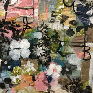 My work is made up of a wide range of materials, often using whatever is at hand. The pieces include recycled papers which are painted, cut up and collaged – often mixed with silk, thread, acrylic, graphite and ink. I also am a sculptor, working in recycled metals. I am a firm believer in using what I have, and no scrap is too small.