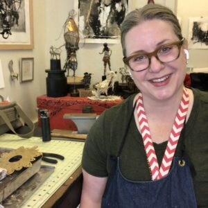 With a background is in both apparel and product design. I have designed and developed a wide variety of products ranging from apparel, accessories, bags and toys. I find that my training as a designer often informs my work, as I see possibility in materials. Behind it all I am an artist with a love of translating what I see in my mind’s eye and bringing it to life. The best results occur when my worlds collide, art in design and design in art.