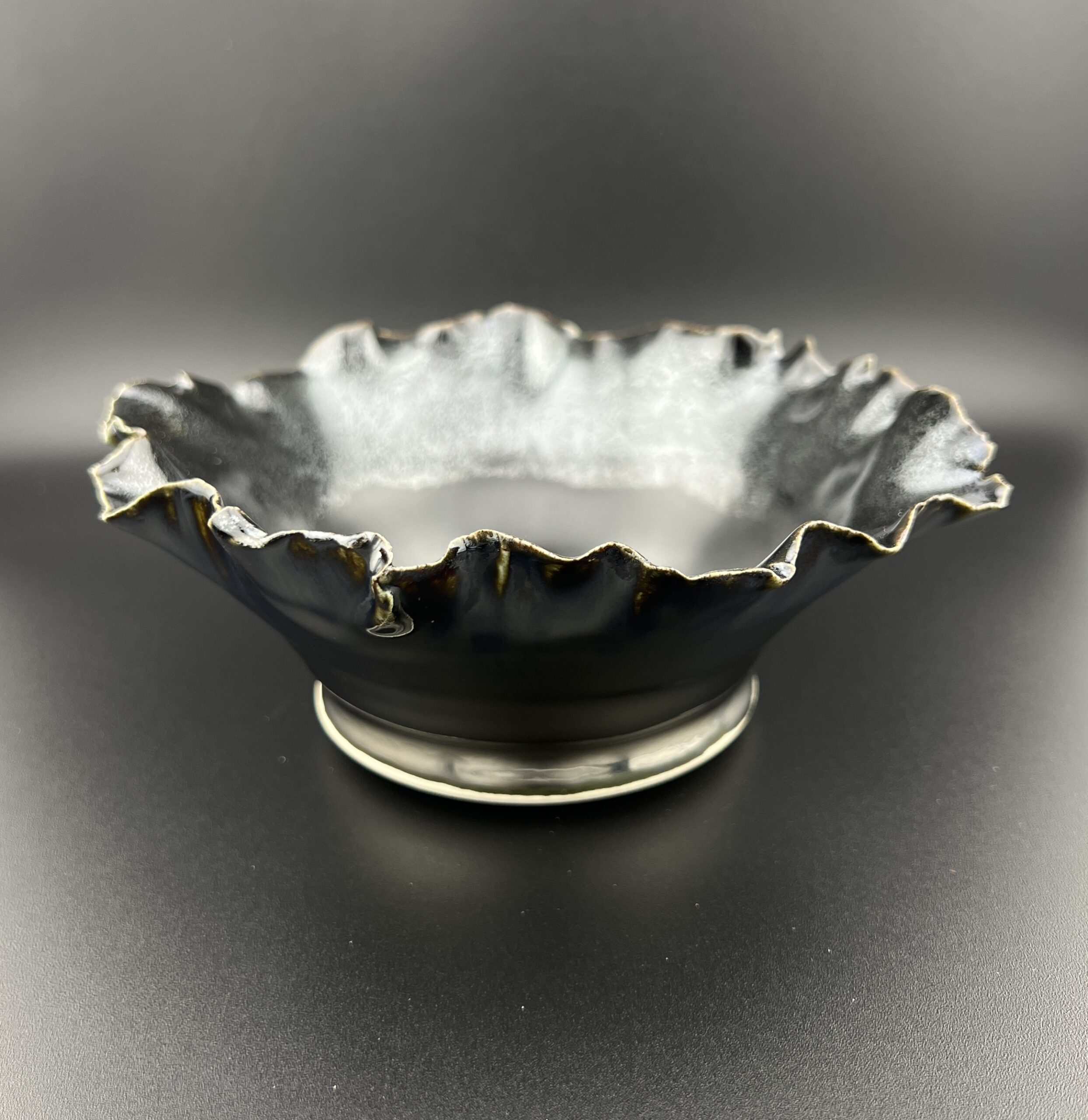 Recently I have been developing the skills to formulate my own glazes through chemistry. I never imagined I’d be drawn back to a subject containing math because it all started with me hiding in the art room to avoid it. Making my own glazes allows me to get the specific results I imagine while also ensuring that my pieces are functional. I am interested in the colors and textures of moss and ferns in the damp forest. Living in Northern California we are surrounded by redwoods, and I have unlimited access to the inspiration of the forest. I’m working on translating those textures and colors into glazes. I am also interested in the modern, smooth look of metallics. My goal is to incorporate the two into works of functional and sculptural pottery.