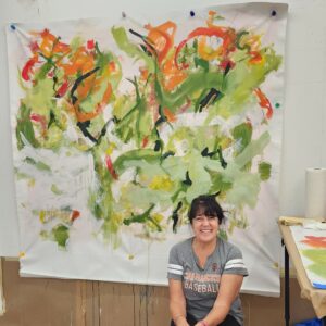 My art language is Abstract Expressionism, with a floral signature. I use bright colors muted by neutral pigments, punctuated with bold strokes. I strive to capture the essence of movement and fluidity with floral designs and bold abstraction, while expressing an emotional undercurrent. My paintings are colorful and joyful, a gentle distraction from the intensity of today’s world.