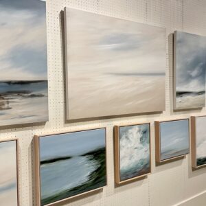 My landscapes are semi abstract in nature and I paint intuitively, inspired by the interplay of land/sea/sky. I gravitate towards a ‘less is more’ aesthetic regardless of the genre, as seen in my still life work as well.